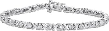 Round-cut white diamonds are prong-set along this timeless tennis bracelet crafted from sterling silver.