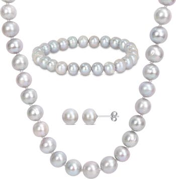 Accessorize with the timeless sophistication of this set that features a single-strand necklace, bracelet and studs showcasing lustrous freshwater pearls.
