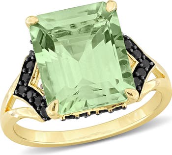 Black sapphire chevrons frame an octagonal-cut green quartz on this glamorous ring crafted from sterling silver with a warm yellow gold finish.