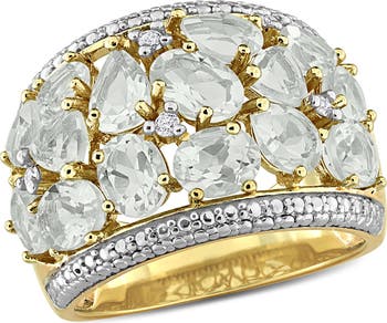 Mixed-cut green quartz and prong-set round diamonds sparkle from this glamorous two-tone ring crafted from sterling silver with a warm gold finish.