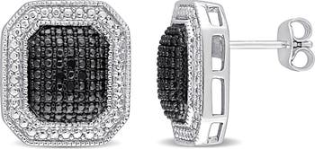 Mark a special occasion with rectangle stud earrings featuring a textured, sterling silver halo and fill of round-cut black diamonds for a brilliant sparkle.