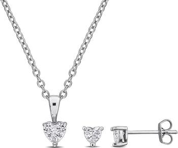 Add sophisticated glamour to special-occasion looks with this earrings and necklace set held in a 14-karat gold-plated setting and detailed with heart-cut cubic zirconia.