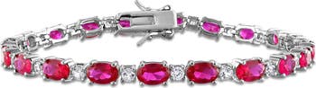Show off glamorous sparkle with this sterling silver tennis bracelet illuminated by lab-created rubies and lab-created white sapphires.