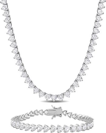 Show off romantic sparkle with this tennis necklace and bracelet set inset with lab-created white sapphire hearts.