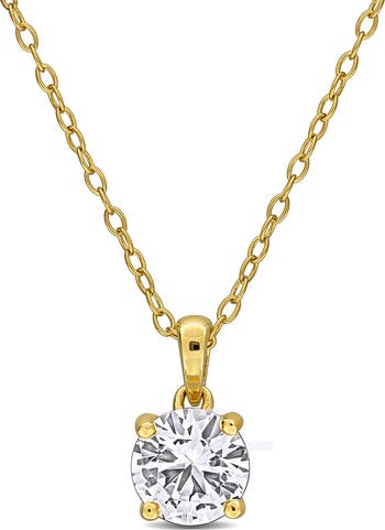 Add the perfect finishing touch to your ensemble with this solitaire necklace featuring a round-cut lab-created white sapphire pendant.