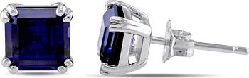 Enhance your everyday ensemble with these classic stud earrings shaped from 10-karat-white gold and centered with lab-grown sapphire.