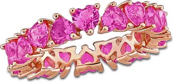 A lovely gift, this romantic eternity ring showcases lab-grown pink sapphire hearts for sweet sparkle.