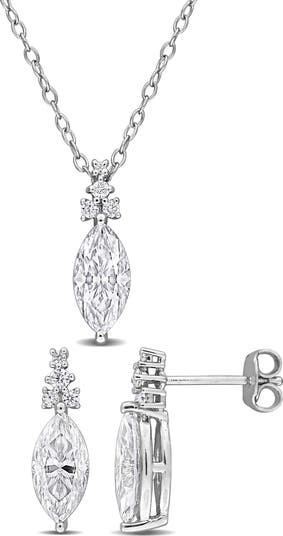 Add sophisticated glamour to special-occasion looks with this earrings and necklace set held in a polished sterling silver setting and detailed with marquis-cut lab-grown moissanite.