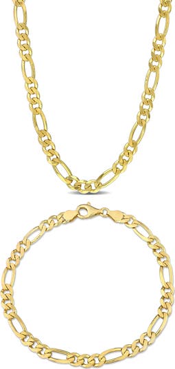 Show off sophisticated style with this Italian figaro-chain necklace and bracelet set boasting a high-shine finish.