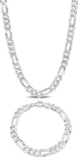 This matching set of a necklace and bracelet are crafted in Italy from slender figaro chain fashioned from sterling silver.