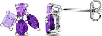 A cluster of Rose de France and African amethyst bring eye-catching color to polished sterling silver studs designed to bring sophisticated glamour to your lobes.