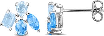 A cluster of sky blue and Swiss topaz bring eye-catching color to polished sterling silver studs designed to bring sophisticated glamour to your lobes.