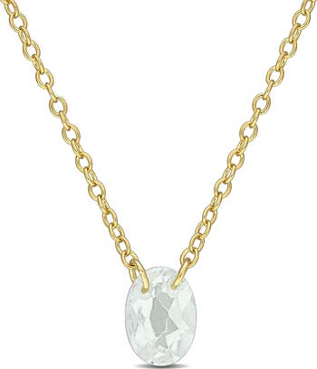 An oval-cut green quartz pendant sparkles from this dainty necklace crafted from sterling silver with a warm goldtone finish.