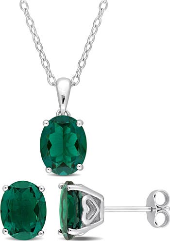 Show off glamorous sparkle with this oval-cut lab-grown emerald stud earrings and pendant necklace set crafted from polished sterling silver.