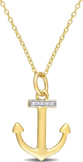 Pave diamonds accent this petite anchor pendant necklace that suspends from a yellow rhodium plated necklace.