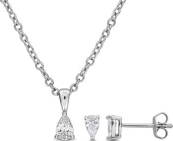 Made to wear together or styled separately, this necklace and earrings set features pear-cut cubic zirconia for elegant sparkle.