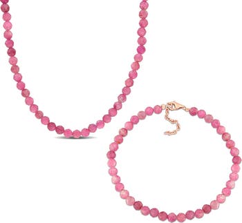 Faceted pink tourmaline stone beads trace this coordinated necklace and bracelet set that's perfect to layer or show off solo.