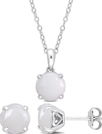 Show off elegant shine with this round-cut opal stud earrings and pendant necklace set crafted from polished sterling silver.
