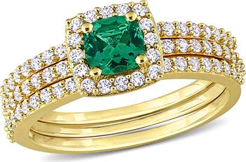 Sparkly lab-grown semiprecious stones illuminate this glamorous set of stackable rings crafted from polished sterling silver.