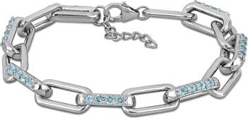 Sky blue topaz stones detail every other paperclip-link on this chain bracelet made from polished sterling silver.