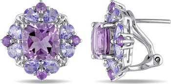 Two-tones of amethyst stones are clustered on these vibrantly colored stud earrings.