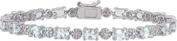 Glistening aquamarines and diamonds add a chic appearance for a sterling silver bracelet.