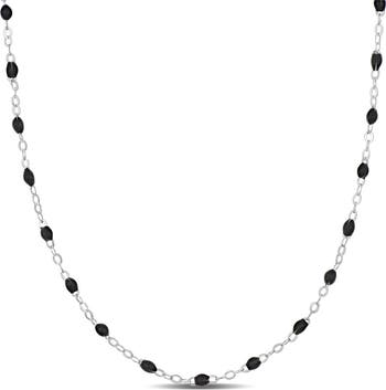 Black enamel stations adorn a dainty rolo-chain necklace elegantly crafted from polished sterling silver.