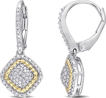 Sterling silver and gold plated ropes adorn sterling silver drop earrings with pavé diamond cushion drops for luxe sparkle.