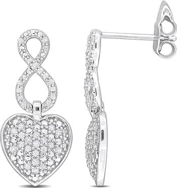Pavé diamonds bring luxurious sparkle to romantic infinity heart drop earrings crafted from polished sterling silver.