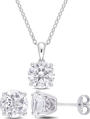 Show off glamorous sparkle with this white topaz stud earrings and pendant necklace set crafted from polished sterling silver.