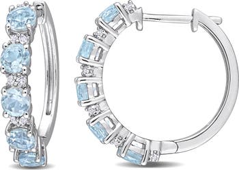 Show off elegant sparkle with sterling silver huggie hoop earrings illuminated by round sky-blue topaz and white topaz stones.