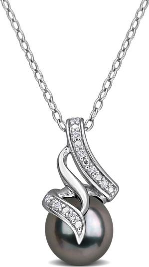 - Sterling silver/cultured freshwater pearl/diamond