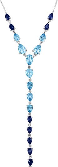 Teardrop shapes draw the eye to this gleaming Y-necklace that emboldens any ensemble with vibrant color.