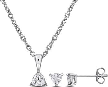 Show off elegant sparkle with this dainty trillion-cut cubic zirconia stud earrings and pendant necklace set.