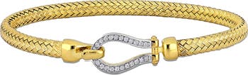A striking two-tone finish catches the eye of passersby when you don your wrist with this polished bracelet adorned with cubic zirconia.