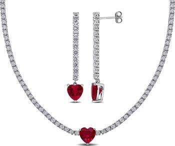Vibrant lab-created rubies bring romantic glow to this white sapphire necklace and coordinating drop earrings set.