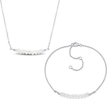 White topaz beads lend a bright pop of color to this jewelry set showcasing a bracelet and necklace done in a polished sterling silver setting.