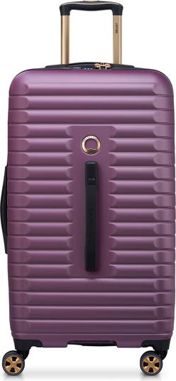 Durable and versatile, this adventure-ready spinner trunk features a textured hardshell exterior that stands up to rigorous travel.
