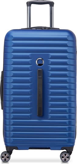 Durable and versatile, this adventure-ready spinner trunk features a textured hardshell exterior that stands up to rigorous travel.