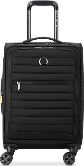 Exterior features: A cushioned softside exterior with a textured surface ensures lightweight durability and protection for your possessions. A telescoping handle maximizes comfort and control for users of different heights. Four double-wheel spinners glide effortlessly to navigate through busy airports.