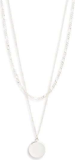 A layered double-strand necklace offers elegant shine to any ensemble with a smooth disc pendant.