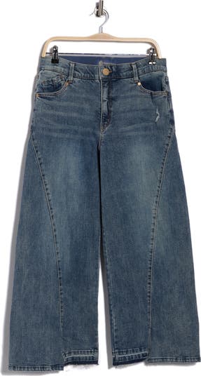 • NYDJ Teresa Rhinestone Slit Hem Wide Leg Jeans