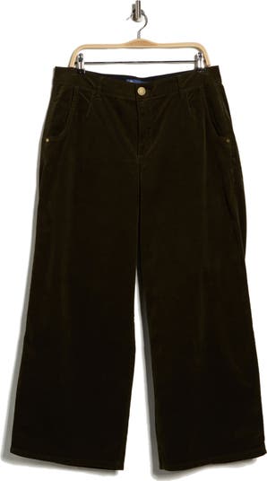 Stretchy corduroy lends classic cool-weather style to these high-rise, wide-leg pants featuring 'Ab'solution shaping panels that smooth your silhouette.