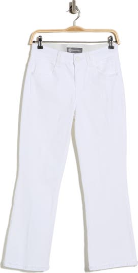 Frayed hems enhance the relaxed vibe of these mid-rise flare-leg jeans cut from stretch cotton-blend denim in a cropped silhouette.