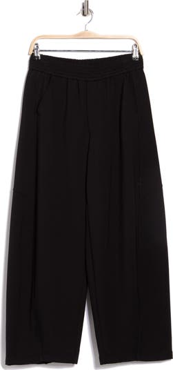 A smocked waist defines these relaxed-fit pants cut from lightweight fabric.