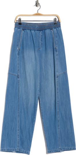 Fading and front seams amplify the casual‑cool styling of these pull‑on pants cut in a straight leg.