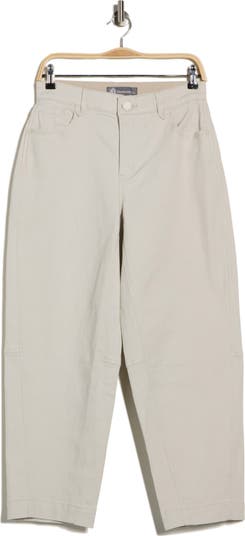 Perfectly washed, stretch-kissed denim shapes these on-trend jeans that curve at the knees and taper to cropped hems for a barrel silhouette.