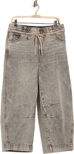 Show off cool retro style in high-waisted barrel-leg jeans cut from stretch-kissed denim in a cropped silhouette.