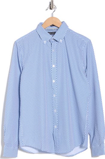 A geometric floral print brings contemporary style to this button-down shirt cut from performance fabric with comfortable stretch.