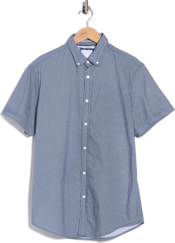 Cut from a lightweight cotton-blend, this short-sleeve button-down shirt covered in a geometric print is an easygoing staple for your collection.